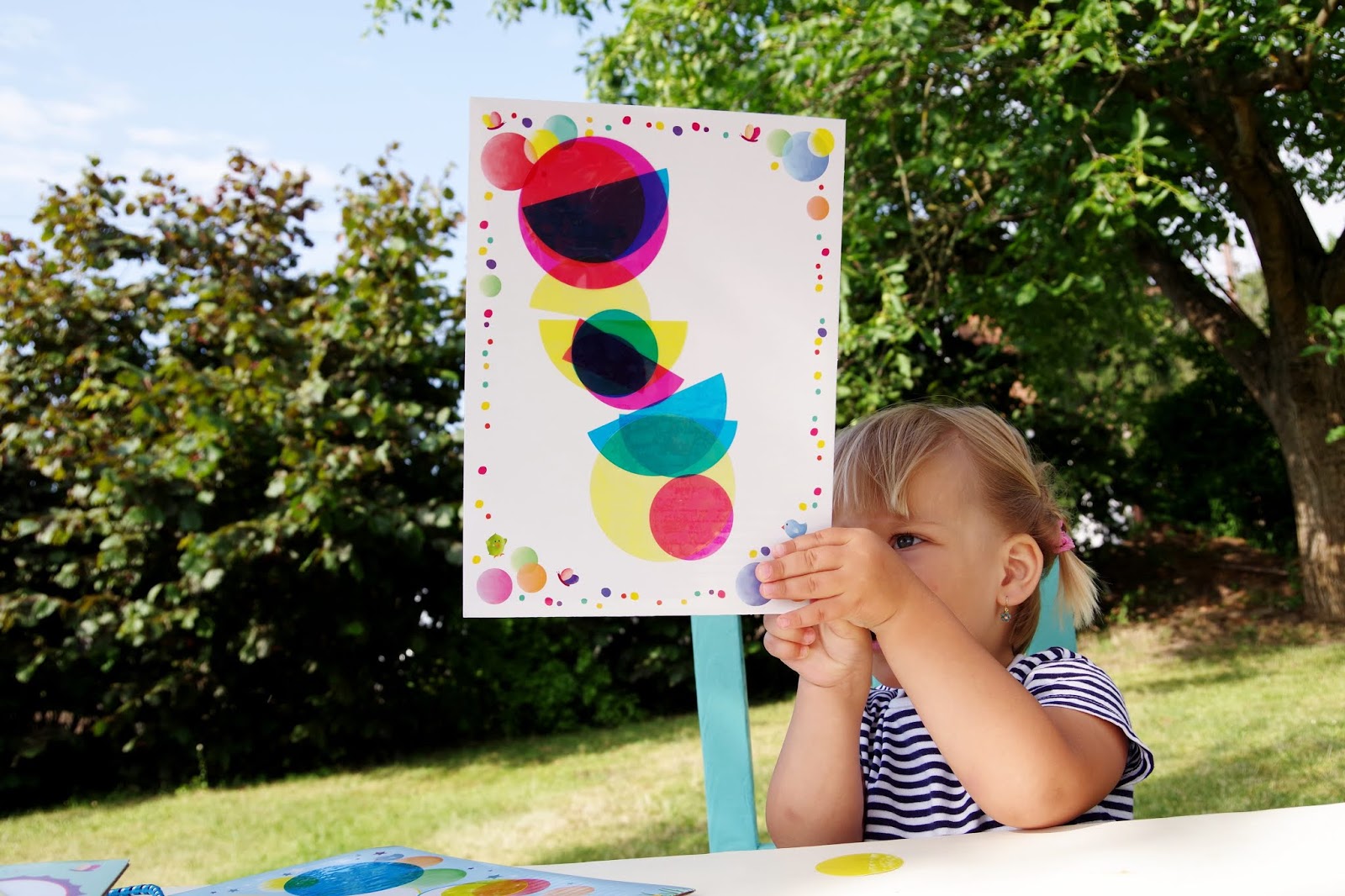 Výtvarná krabička od Djeco vám nese balónky|bublinky, které (jednoduše) odlepíte a poloprůhlednou fólii kruhových a půlkruhových tvarů pak můžete lepit a lepit a zase lepit. Z opakovaně(!) použitelných nálepek si na papír můžete stvořit, co vás jen napadne. Co máte v hlavě, co máte před očima. Na co (ne)můžete přestat myslet.